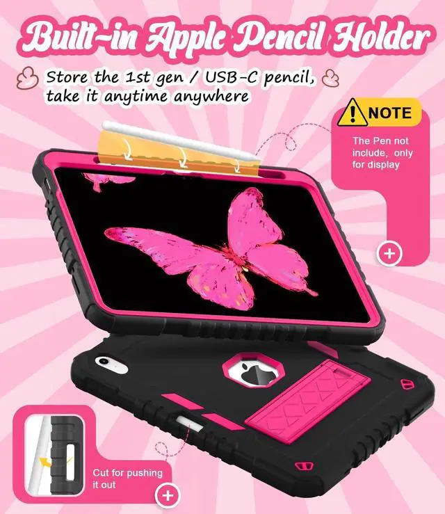 ^^ Built-in kickstand: Slide the back stand to a fixed position, flip and place the iPad to select a vertical or horizontal reading and browsing angle ^^ Supports to Apple Pencil- Easy to take and place pencil in the slot whenever you need (Not Inclued Pencil) (May not be suitable for pencils from other brands) ^^