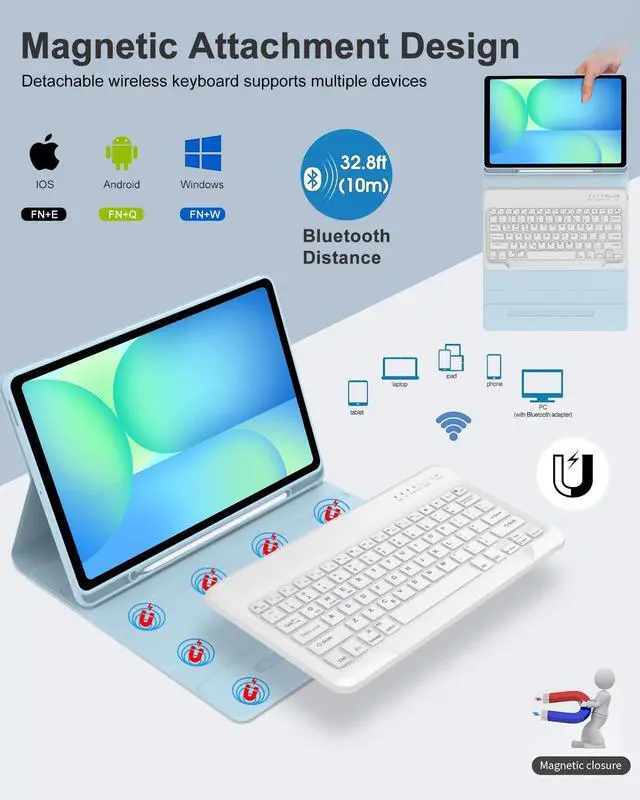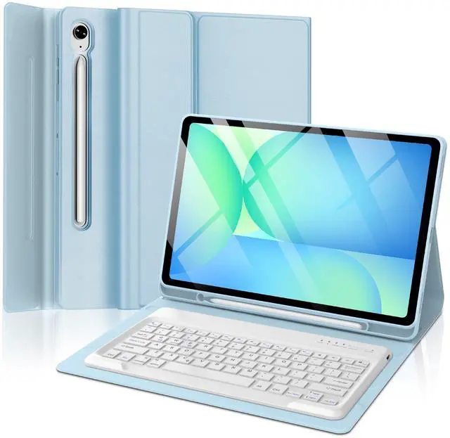 Perfect for working, writing, reading or watching videos. 360 Protection for TabletFor samsung tablet keyboard case features a sturdy high-quality PU shell and soft anti slip rubber lining inside, providing comprehensive protection for your tablet. Portable Shortcut KeysThe slim keyboard for 2025 galaxy tablet has shortcut function keys, allowing you to enjoy the excellent versatility for typing, reading and gaming. Auto Sleep & Wake FunctionFor samsung s10 fe plus keyboard with pencil holder will automatically put the tablet screen to sleep or wake up when you open or close it, which helps protect and save battery life, extending the time you use your tablet.