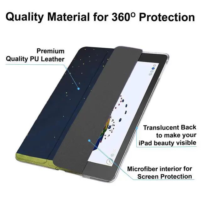 • Ultra Slim & Lightweight Profile Premium PU Leather Soft-Touch Front Exterior, Soft Scratch-Free Microfiber Interior offer great Protection & Translucent Back makes beauty of your iPad visible. High Quality Lightweight Material & Excellent design makes this case feel very Stylish & Premium & Fully Protects your device against Shock, Abrasion, Scratch, Fingerprint, Slips, Dirt & Corner Damages.