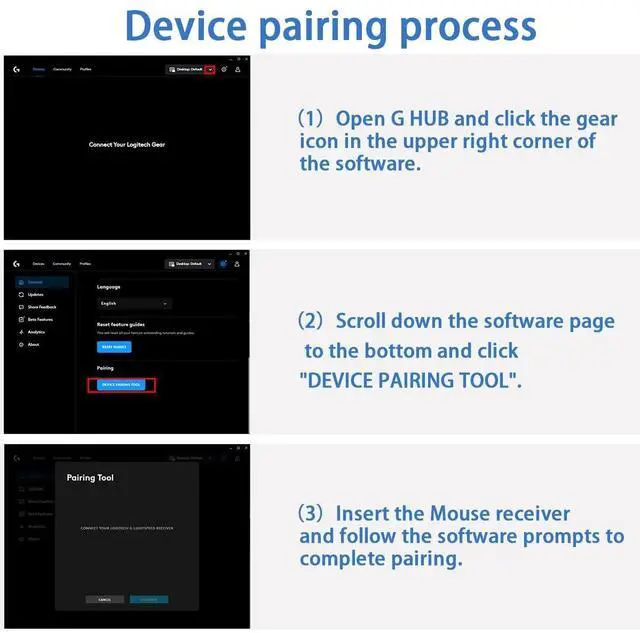 Receiver Pairing Method: 1. Download G HUB software. 2. Insert the mouse receiver.