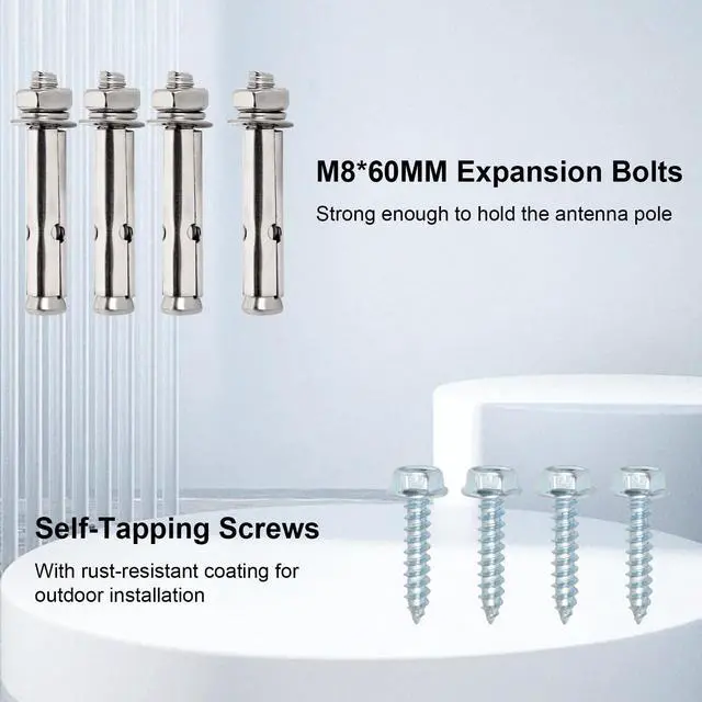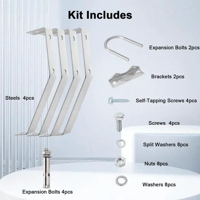 ^^ Kit includes: 1 pair(2-leg and 2-leg mount braces), including U-Bolt, V-Block Brackets, M8*60mm expansion bolts and lag bolts for reliable mount.
