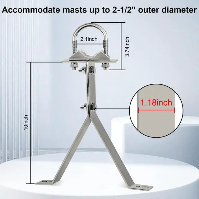 This antenna wall mount could support a long mast with a large antenna on top. ^^ The Antenna Wall Mount is easy to install. Setup is pretty easy for wood siding with lag bolts. It also comes with expansion bolts for concrete.