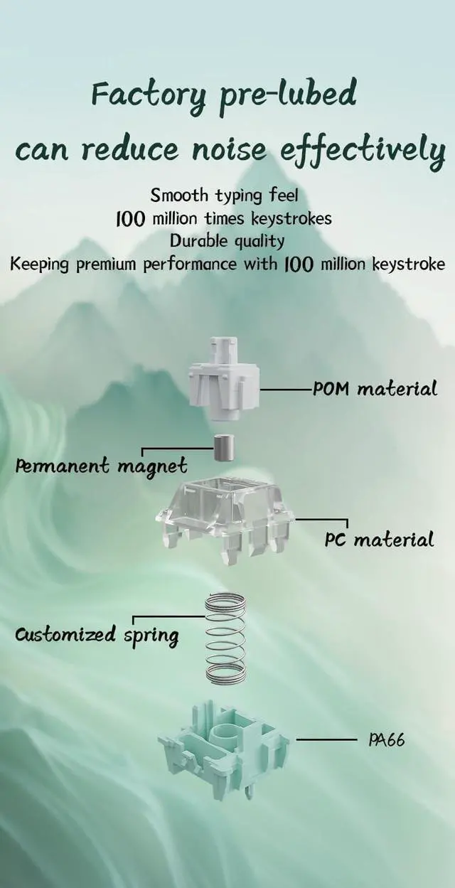 Factory Pre-Lubed: The Magnetic Jade Switch comes factory pre-lubed, not only reducing noise effectively but also contributing to a smooth typing feel. Enjoy a seamless typing experience right out of the box.