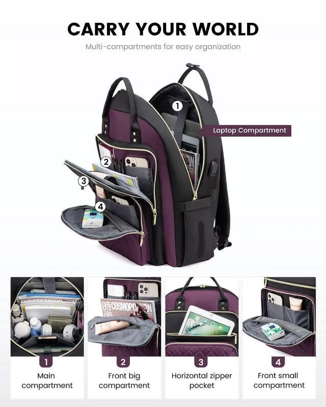 It easily accommodates your daily needs or items required for a three-day trip ^^: This backpack features ergonomic breathable mesh shoulder straps and a large quick-grab top handle. With 18 pockets, multiple compartments, and multiple pocket divisions, you can keep your items organized and easily find what you need. It is ideal as a work, college, or travel backpack ^^ Laptop