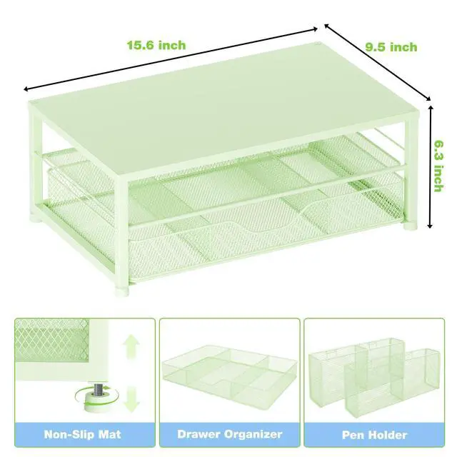 OPNICE Desk Organizers and Accessories, 2-Tier Computer Monitor Stand Riser with Drawer and 2 Pen Holders, Laptop Stand, Office Desk Accessories for Office Supplies, Green