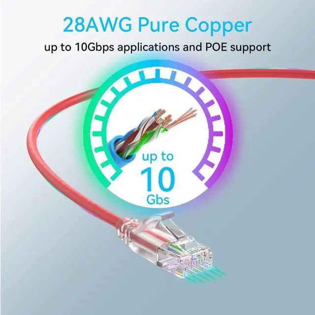^^ 10G Performance: slim cat6 patch cable is made of pure copper 28 awg and popular used in data centers and homenetwork. Network patch cables is perfectly good for data transfer up to 10 Gbps applications and POE support. ^^