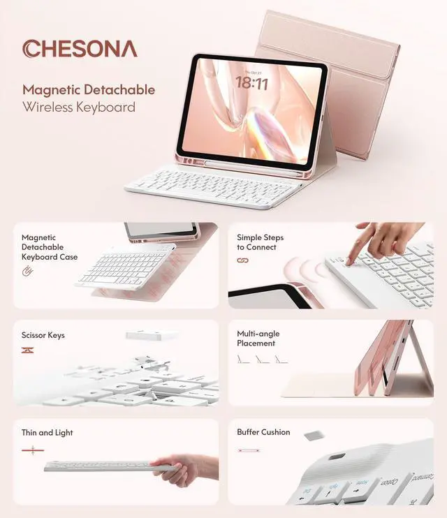 Number: A2696/A2757/A2777). Please verify your tablet model carefully before purchasing. (iPad and pen not included) ^^ Detachable & Multiple Viewing Angles The keyboard case for New iPad (A16) 11th has three adjustable angles, which can be easily adjusted to a comfortable angle for a pleasant using experience. And keyboard case is detachable. When you do not need to type the keyboard can be stored away, easy to carry the tablet on the go. This case with keyboard let you work comfortably at any time of day. ^^ Pencil Holder & Rechargeable Keyboard The keyboard case for iPad 10th generation built-in pencil holder, which can easily carry your pencil. Rechargeable keyboard brings a different experience to your work. You can charge your keyboard with the charging cable that comes with it. Wireless keyboards for iPad built-in high stability lithium-ion battery with energy-saving mode, no more worry about change battery.
