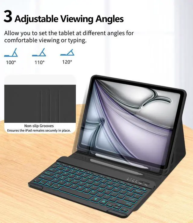 Versatile Viewing Angles: Designed with a flip magnet separation, this ipad Air 13 inch keyboard case offers three adjustable stand angles, providing optimal comfort for typing, reading, or gaming. Easily switch between positions to find the perfect angle for any activity, whether at work, school, or home ^^ 360