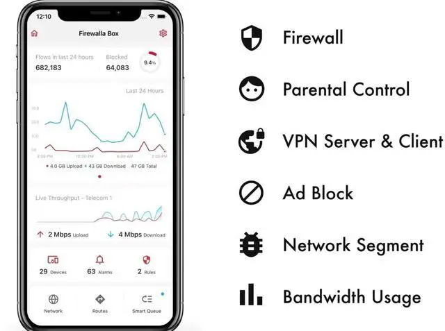 Its the simple and affordable solution for families, professionals and businesses. Let Firewallas built-in OpenVPN server keeps your device usage as secure as it is in your home. ^^ PARENTAL CONTROL AND FAMILY PROTECT - The days of pulling the power cord from the dusty old router are behind you; with just a few taps on the smartphone, you can see what theyre doing, cut off all access, or cut off only gaming or social networks. Turn on Family Protect to filter and block adult and malicious content, keep internet activities healthy and safe.