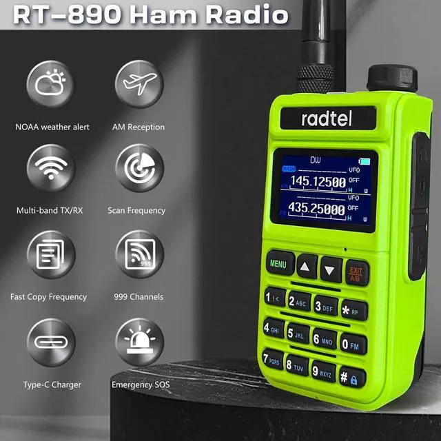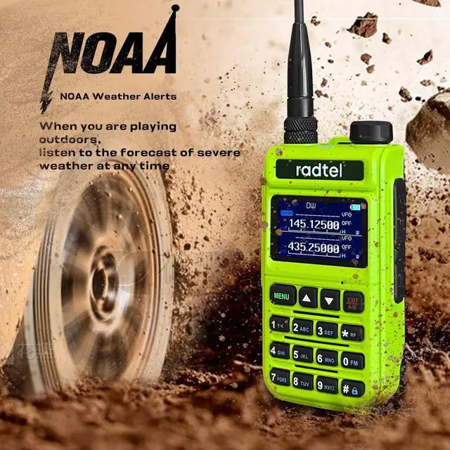[Daul Band TX/RX and Full Band RX] 144-148Mhz/420-450Mhz TX/RX. Full Band 136-520MHZ Scanning Receive, AM: 108-136Mhz Rx, FM: 64-108mhz Rx ^^ [Air Copy Frequency] One key copy frequency (Auto frequency capture): This function mean that the radio can copy other radio's frequency and CTCSS/DCS tone and make them communcate immediately without programming (radio and radio within 1 meter distance ) This features is very good for outdoor activities ^^ [NOAA Weather Alert] Support NOAA U. S Weather Channel Receive and type C charger(USB-C cable not included), High/Middle/Low power Support listen AM air band frequency and also receive FM RADIO boardcase signal. ^^ [999 Channels]Color LCD display with Dual band, dual display, dual standby. Frequency Measurement to copy one frequency from other radios with