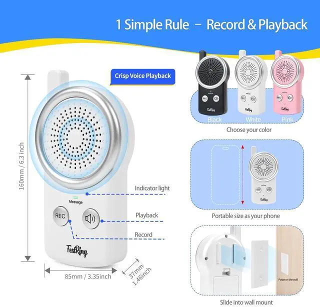 Loop Storage: Holds 10 high-definition recordings, each up to 50 seconds long. New recordings automatically overwrite the oldest message when full, eliminating manual cleanup. Conveniently store and retrieve important information repeatedly for hassle-free management ^^