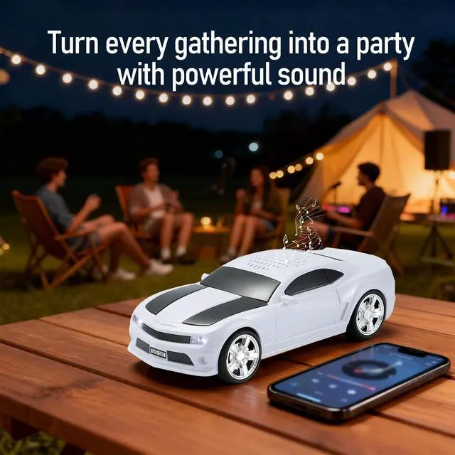 Eye-Catching Supercar Design Inspired by iconic sports cars, this Bluetooth speaker stands out with its bold yellow body, realistic wheels, and sleek silhouette. Perfect for car lovers and anyone looking to add personality to their desk or shelf ^^ Premium HD Sound with TWS Support Enjoy powerful audio clarity with HD sound. Pair two WS-592 units for immersive stereo via TWSideal for parties, outdoor gatherings, or movie night on the patio ^^ LED Party Lighting & FM Radio Built-in LED lights pulse gently with your music, setting the mood for any event.