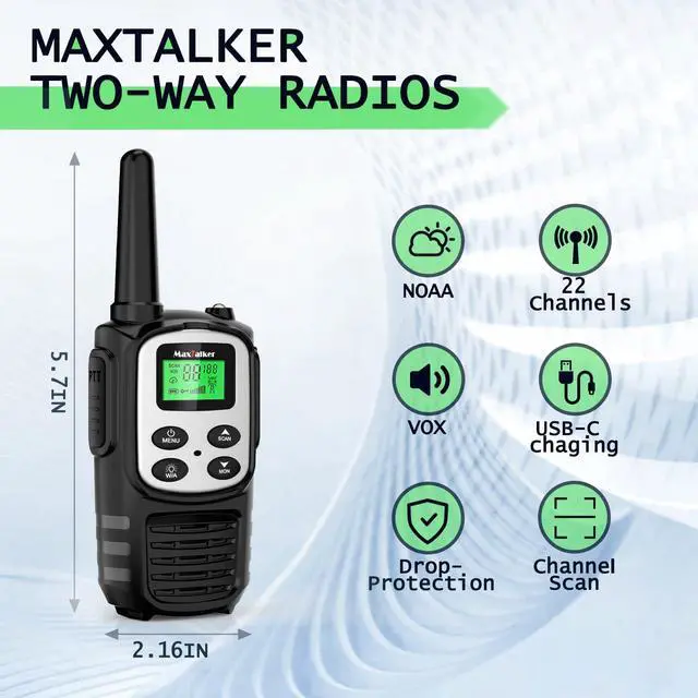 Walkie Talkies Long Range: MaxTalker MT10 FRS walkie talkies offer an impressive communication range of up to 5 miles in open areas, ensuring you can stay connected with friends and family during outdoor adventures, camping trips, or hiking excursions ^^ 22