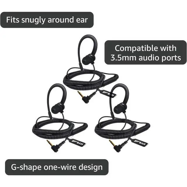 A high-quality one-wire G Shape kit for environments using radios with simple 1-pin 3.5 mm (LISTEN ONLY EARPIECE) connectors that fits snugly around the ear to keep earphone firmly in place. ^^ HYS Earpiece Compatible with Shoulder/Remote Speaker Microphones with a 3.5 mm audio Receive Only Port; Working for standard, Incom, Yaesu, Alinco, Motorola and Adi transceivers, also fits radio speaker mics, similar devices with 3.5 mm connector. ^^ Designed to ensure quality and performance, HYS accessories are lightweight, comfortable, low-profile and work with many 3.5 mm Audio Jacks speaker microphone model.