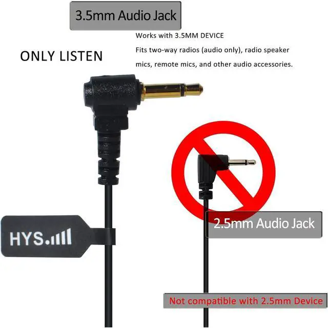 • HYS Earpiece Compatible with Shoulder/Remote Speaker Microphones with a 3.5mm audio Receive Only Port; Working for standard, Incom, Yaesu, Alinco, Motorola and Adi transceivers, also fits radio speaker mics, similar devices with 3.5mm connector.