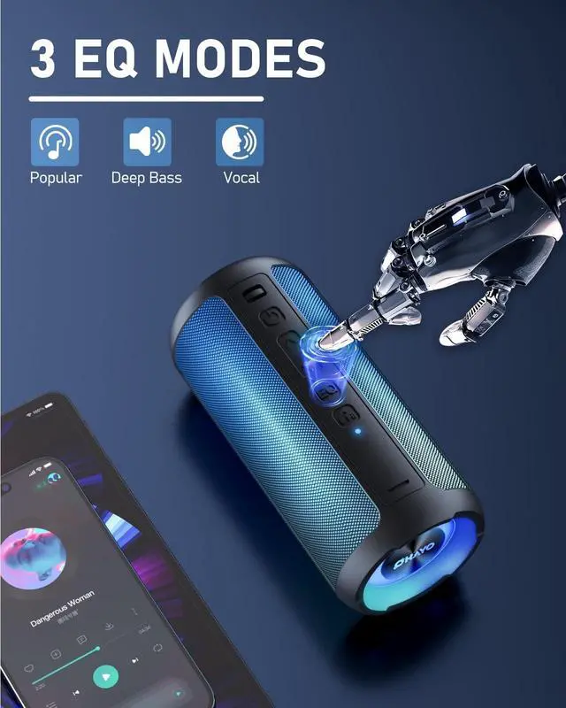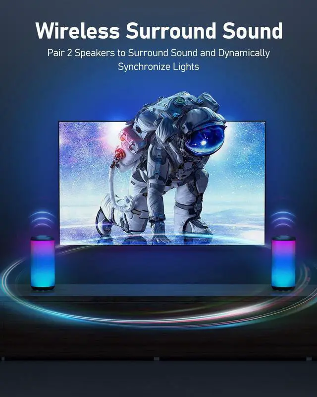 The vibrant, beat-synced lighting creates an immersive atmosphere for parties, gatherings, or chill nights. Easily turn the lights off when needed. ^^ Hands-Free Calls & TWS PairingStay connected with the built-in microphone for crystal-clear hands-free calls. Want bigger sound? Use TWS (True Wireless Stereo) to pair two speakers for synchronized, room-filling stereo audio. ^^ Customizable EQ & IPX6 WaterproofSwitch between three EQ modes to match your music stylewhether you prefer deep bass, balanced sound, or enhanced vocals. With an IPX6 waterproof rating, this speaker can handle splashes, rain, and outdoor conditions effortlessly.