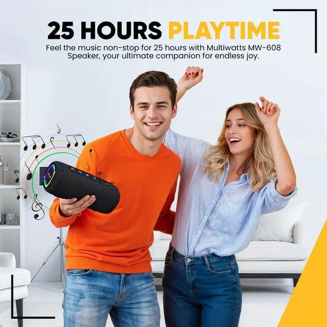• 40W TWS Double Stereo Boost: Imagine the thrill of pairing two MW-608 speakers together via Bluetooth 5.3 for 40W stereo surround sound, filling every moment with bold, immersive audio. Whether you're hosting backyard parties, soaking up the sun on beach days, pushing your limits in beast mode at the gym, or relaxing by the pool, this speaker is your perfect companion. With crystal-clear highs, tight mids, and thumping lows, it delivers no distortion, just pure, dynamic sound that will ignite unforgettable moments and make every experience feel alive.