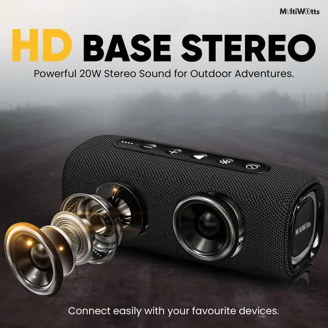 • Feel Every Beat Like Never Before: Let the explosive bass of the Multwatts Bluetooth Speaker take you on a journey. With 20W output and advanced technology, youll experience deep, immersive bass and crystal-clear sound without distortion. The Active Extra Bass mode brings powerful sound that fills the room. Why settle for less when this portable Bluetooth speaker is built for anything and everything you love?