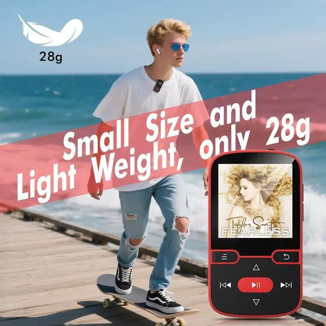 Portable Back Clip MP3 Player with Bluetooth 5.3 Enjoy smooth and steady audio streaming with Bluetooth 5.3. Bluetooth MP3 player easily pairs with wireless headphones or speakers for a seamless music experience, choose between sequential play, shuffle repeat, single song repeat, or all song repeat modes. Clip-on MP3 music with Bluetooth is perfect for music lovers. [NOTE] MP3 player is a Bluetooth transmitter, not a receiver; it cannot be paired with mobile phones. ^^ 64GB + 128GB Internal Memory, Physical Buttons, 1.5 -inch TFT Color Screen MP3 Player With 64GB internal memory and the ability to expand the micro SD card up to 128GB, mini MP3 player with Bluetooth offers plenty of space for songs and audiobooks - take thousands of songs wherever you go.