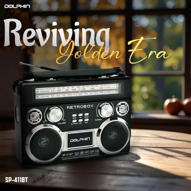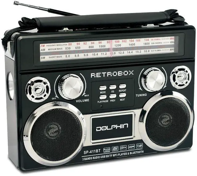 Dolphin RETROBOX Portable Bluetooth AM/FM Radio (Black)