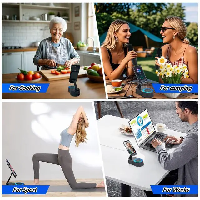Unique 5-in-1 Multifunctional Design A multifunctional device that combines wireless bluetooth speaker, Karaoke cell Phone Stand, and ambient light, chargingUse your own charging cable, with a built-in power speaker that delivers high-definition stereo surround sound at any volume level for an enhanced audio experience. Our upgraded Bluetooth speaker comes with a USB port for charging in case of emergencies, enhancing your multimedia experience with one multifunctional device ^^ Complete Portable Karaoke Solution Pretty much a portable karaoke machine. With 2 interference-resistant wireless microphones, There are 7 voice modes, professional, girl, boy, child, Magic and so onThis machine for adults has powerful sound, clear vocals, easy operation, and creates a happy atmosphere, with it you have a speaker, microphone, media player and guitar amplifier, versatile, the best companion for fun ^^ 360 Adjustable Viewing Angle & STABLE STANDFeaturing an ergonomic 360 rotating mechanism that supports optimal screen positioning for video calls, gaming, or movie nights.