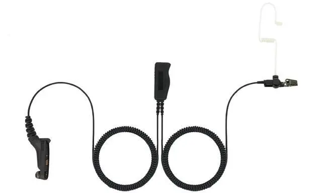 100% compatible with all OEM radios ^^ High quality speaker for bright, clear sound ^^ Noise cancelling lapel mic for clear transmission ^^ Clothing clip and push to talk on lapel microphone ^^ Waterproof against rain, sweat, splashes, etc. (IP-56 compliant) ^^ Acoustic eartube earpiece with interchangeable ear inserts. Earbuds included. Open ear inserts available separately. ^^ Durable materials and workmanship, reinforced strain relief and termination points ^^ 90 day no-hassle warranty ^^ Matte black finish