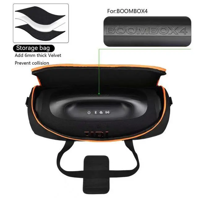 Portable Bluetooth Speaker: Carrying Case Cover with premium material - soft internal velvet, external polyester and pe to protect your Boombox 4 Portable Bluetooth Speaker from falling, bumping, scratching and damaging. Fully protect your Boombox 4 Portable Bluetooth Speaker all the time. ^^ Convenient extra side pocket for taking accessories: Travel Case Bag for JBL Boombox 4 Portable Bluetooth Speaker with extra side pocket for taking the power cord and other small accessories, one case bag for all your need. ^^ Tote bag or shoulder bag design: Travel cover with built in carrying handle and send with adjustable shoulder strap, convenient to carry your Boombox 4 Portable Bluetooth Speaker or make it a shoulder bag and easy to go swimming, hiking, cycling, travelling, parties, etc. ^^