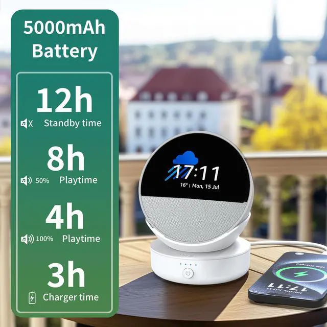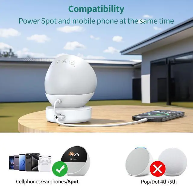 PORTABLE: With the battery, your Spot device doesn't have to stay in one place. You can move it wherever you want, whenever you want. For example, bedroom, balcony, living room, dining room, terrace, bathroom, gardengarage and backyard ^^