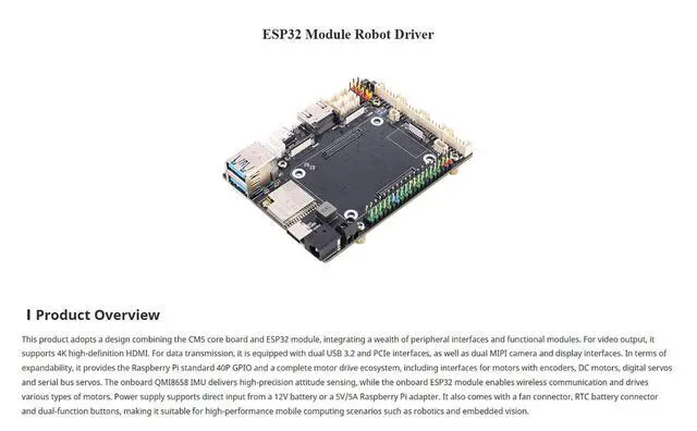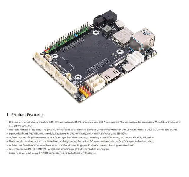 Motor Control Ecosystem: Drives various motors including DC motors with encoders, digital servos (e. g., 996R), and serial bus servos (up to 253). Offers a complete motor driver board solution for robotics. ^^ Advanced Sensing &