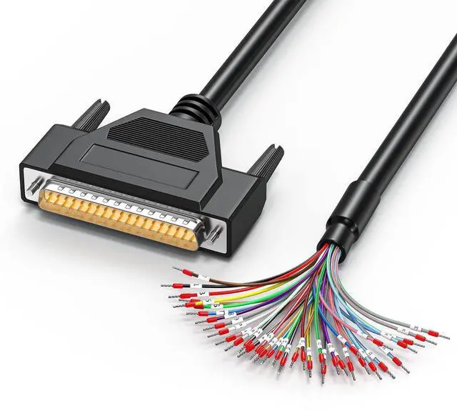 Bare Wire Design: Features a DB37 male adapter with bare wires, each terminated with red copper cold crimping terminalsfirmly crimped to prevent loosening, ensuring secure connections for wiring setups.