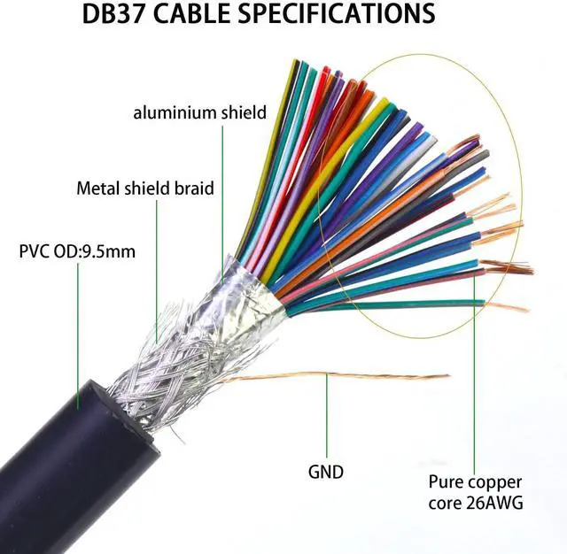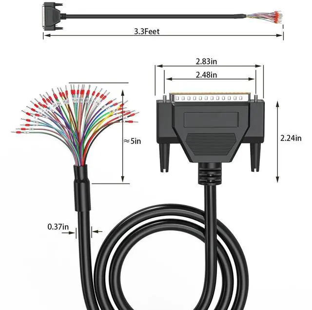 DB37 Male Adapter to Bare Wire 6.6FT ^^ 26AWG ^^ Multicore 37 Wire All Provided with Wiring TerminalsDB37 Male to