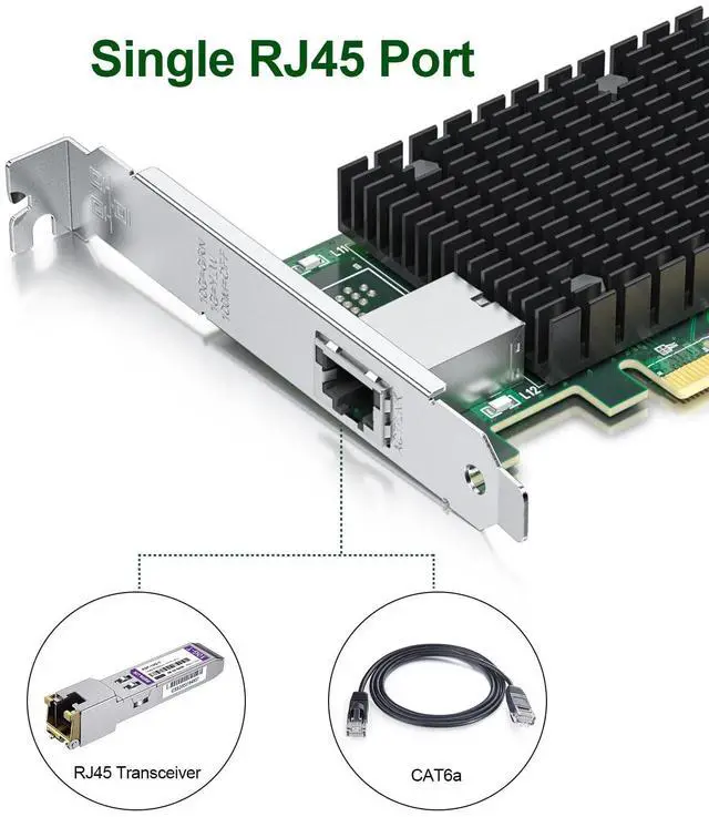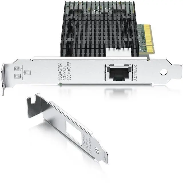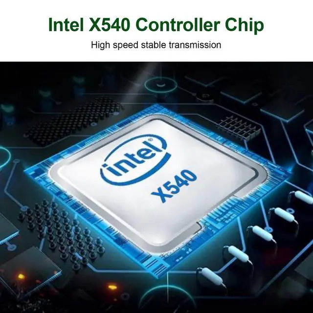 rate: 10Gbps/1Gbps; NON FOR 5G/ 2.5G; NON SUPPORT HOT SWAPING! ^^: Intel X540-BT2 controller, supports single-root I/O virtualization (SR-IOV) to improve network performance ^^: Windows Server 2012/2016/2019, Windows7/8/10, Linux, VMware ESX/ESXi 5/6/7, FreeBSD 11/12/13/14, Ubuntu 20/22 ^^.: Single 10G RJ45 port, up to 100m @Cat. 6a. Full height and low profile bracket for standard computer and servers