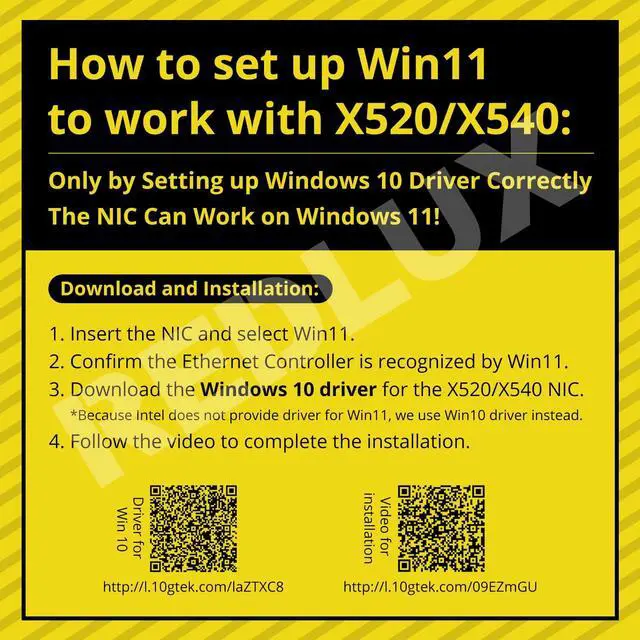 : 1) You should install the Windows 10 driver and follow the direction of "how to set up Windows 11" to set up. 2) The Dell and HPE servers require MCU info matching the host OS; however, this NIC doesn't satisfy. Please contact us before making a purchase ^^: Data