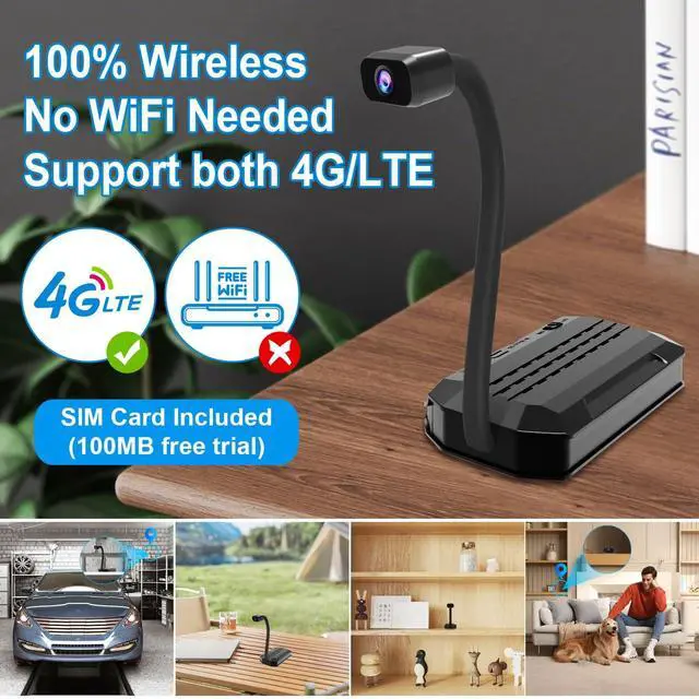 Portable Camera No Wi-Fi RequiredThis camera enables remote monitoring via 4G LTE, effortlessly ensuring securityideal for Wi-Fi-free environments like cabins, campsites, and motels. Its compact design makes it easy to carry and install anywherewhether at home, traveling, camping, or in your vehicleso you can always check on your home. ^^ Built-in 4G SIM Card Multi-Carrier CompatiblePre-installed with a 4G prepaid SIM card and 100MB of free data, it's ready to use right out of the box. Easily subscribe to data plans via the app to keep your 4G security camera running smoothly anytime, anywhere.