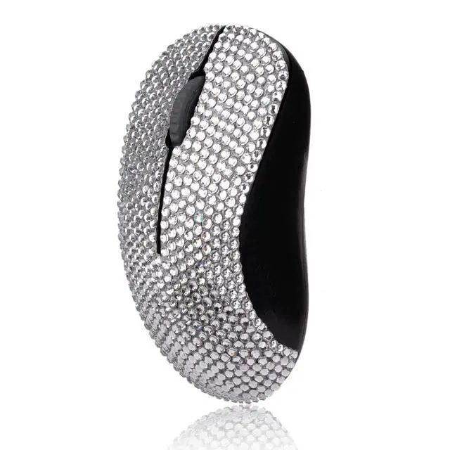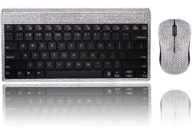 Dazzling Luxury Keyboard and Mouse Wireless, Sparkly Bling Rhinestone Wireless Mouse and Keyboard Gift Set - Silver Crystal with Black Mouse