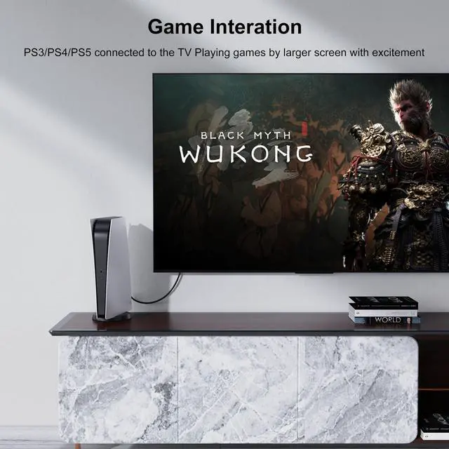 Real 8K HDMI 2.1 CableHigh Speed HDMI Cable meets the standard HDMI 2.1 48Gbps, 3 times faster than 4K Visual. Supports HDCP 2.2 & 2.3, Dynamic HDR (HDR10+), SBTM, Enhanced Audio Return Channel (eARC), Variable Refresh Rate (VRR), Quick Media Switching (QMS), Quick Frame Transport (QFT), Dolby Atmos, DTS: X, 3D ^^ 8K High ResolutionHDMI Cable high resolution up to 8K@60Hz (7680*4320) including 8K@60Hz, 4K@120Hz/144Hz/165Hz, 1080P@240Hz, Backward for HDMI 2.0 / 1.4 / 1.3 / 1.2 / 1.1 etc vision ^^ New StyleShell using aluminum alloy high-pressure electrostatic plastic-sprayed surface and 100% pure copper core to deliver crisp, pin-sharp video and pristine sound. Not only beautiful appearance, strong practicability and feels good, but flexible and free to use, and with long service life ^^ All-purpose functionalityThis 8K HDMI Cable is satisfied with the high-performance graphics cards, compatible for your streaming devices, PS5, PS4, Xbox, Switch, Blu-Ray Players, DVD Player, Apple TV, Roku, Soundbar, etc with our HDTV, Monitor or Projector. All purpose mode, making your work, game and life more easy and interesting ^^ Premium ServiceWe provide 48 months of dependable customer care and 24*7 friendly client consultation