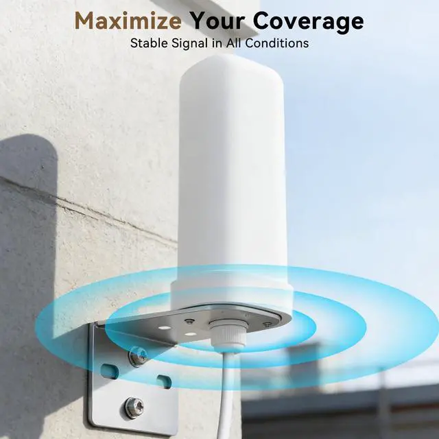 ^^ Premium Build Quality: Features a sleek, low-profile white "Mushroom" design with a durable blue mounting bracket. The joint material is premium all copper gold-plated. This design is not only aesthetically pleasing and less intrusive than traditional antennas but also ensures minimal signal loss and maximum lifespan. Invest in quality and stabilityget a professional-grade antenna that blends seamlessly into any outdoor setting while providing a stable, low-impedance (50 Ohm) signal path.