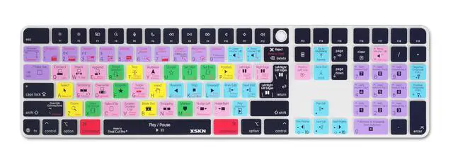 XSKN Final Cut Pro shortcuts magic keyboard with touch id and numeric keypad A3119 silicone keyboard cover skin-