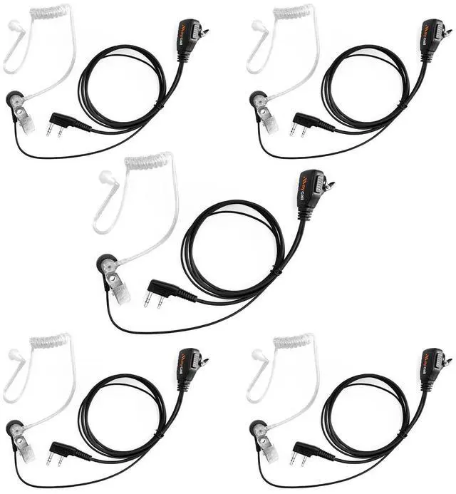 K Head 2 Pin PlugMaycall walkie talkies earpiece use K Head 2 Pin Plug that is compatible with Baofeng UV-5R/888S, Retevis H-777/R21/RT22, Kenwood TH-F6/F6A/D7 and so on. To see more compatible information, please seach in the description page. ^^ PTT Mic FunctionRadio earpiece has a remote microphone with push to talk button. So you don't need to use the Mic of radio When you want to transmit. You can keep in touch with your team without distraction or discomfort. ^^ Easy to WearThe sound tube of the walkie talkie earpiece with mic is close to the ear, designed ergonomically, comfortable to wear, and not easy to fall off, keeping your conversations private.