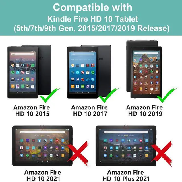 Compatibility- Specifically designed for All-new Kindle Fire HD 10 tablet (9th/7th generation, 2019/2017 release) 10.1 inch, Not compatible with any other tablet, Please Check Your Device Model Before Purchase. ^^ Full Protection- Fire HD 10 2019 Tablet case ultra slim and lightweight design with fashion pattern. PU leather soft-touch front exterior with soft TPU back, protect the tablet from dirt, scratch, shocks and bumps. Shockproof and impact resistant. ^^ Stand Design/Perfect Cutouts- Convenient stand position for watching movie or typing, and offer a cozy angle to view and let your hands free.