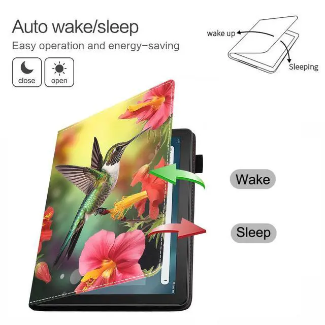 Case with precise cutouts can be easily access to all features (Charging port, Camera, Buttons, speakers, Headphone jack). ^^ Auto Wake/Sleep- Built-in magnetic strip, automatically wakes or puts your tablet to sleep when the lid is opened and closed. Protects and extends battery life. ^^ Card Slots Design- Designed with 4 delicate card slots inside for you to carry your necessary cards, notes and cash when going out. There is a flexible pencil holder at the edge of the shell for keeping your stylus in place.