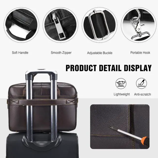 Weight: 1kgFeaturing main bags, multiple inner pockets, and a zippered layer, it holds a 14 laptop, documents, phones, and more. You can neatly store work files, personal gadgets, and daily essentials, so youll never fumble for items during busy workdays, business trips, or campus visits. Elevate your professional look with this executive leather laptop briefcase. Crafted from premium leather, this briefcase is sturdy and long-lasting, resisting scratches and daily wear. Whether youre a young grad entering the workforce or a mid-career professional, it elevates your style. Comfortable Carrying OptionsComes with sturdy handles and an adjustable shoulder strap, allowing hand-carry or shoulder wear. The design ensures comfort even during long hours on the go. You can switch between carrying styles easily, whether youre rushing to catch a train, walking to the office, or heading to a client meeting. Multi-Occasion Use & Gift IdeaPerfect for business travel, office work, daily commuting, and even weekend errands. Its also a thoughtful gift for husbands, fathers, or colleagues on birthdays, Christmas, or work anniversaries.