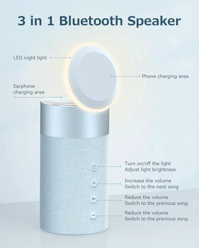 & Safe Lights]: Bluetooth speaker with LED night light is low energy, environmentally friendly and money saving. COLSUR use high quality ABS material to ensure higher safety and durability. Even as a nursing light, we also perfect for your baby's room. ^^ [Gift for