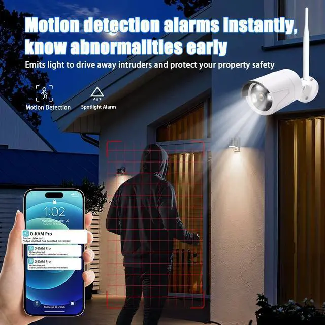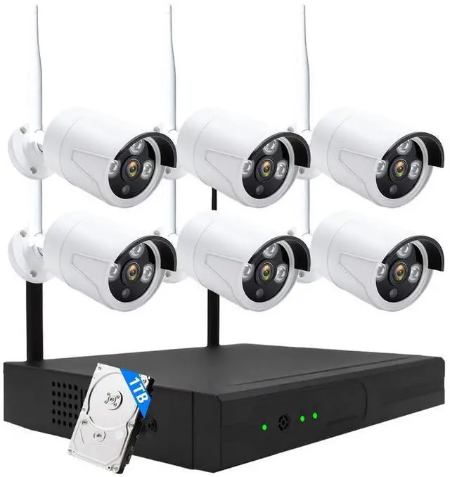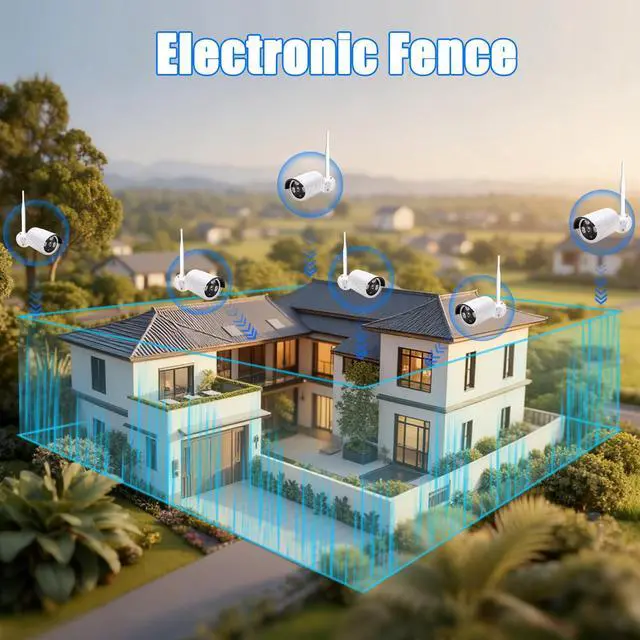Simple setup: 1) Connect NVR and cameras to power adapters. 2) Plug in mouse to NVR, link PC/TV monitor via VGA/HDMI for instant video display. This complete wireless CCTV system supports up to 10ch expansion, offering flexible coverage for large homes/businessesno network config needed for local viewing ^^ Smart Motion Detection & Instant Mobile Alerts Receive immediate notifications on your smartphone when movement is detected. The advanced sensor technology minimizes false alarms while ensuring you're alerted to important events. Customize detection time and monitoring schedules through the free mobile app for personalized security that fits your lifestyle. ^^ Dual Storage Options & Advanced H. 265 Compression Choose between local hard drive storage (up to 6TB) or secure cloud storage to keep your footage safe. The H. 265 video compression technology reduces file sizes by 50% compared to H. 264 while maintaining excellent video quality, allowing longer recording periods and saving storage space. ^^ Weatherproof IP66 Rating & 15m Night Vision Built with IP66 waterproof rating, these cameras withstand heavy rain, snow, and extreme temperatures for reliable outdoor use. Three infrared spotlights provide up to 15 meters of night vision capability, ensuring clear monitoring around the clock regardless of lighting conditions.