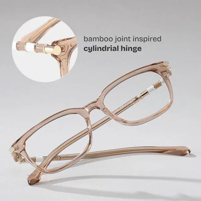 Our blue light blocking glasses comes with UV400 protective lenses, it can protect our eyes from blue light and harmful rays, relieve your vision fatigue and headache at work and in life to get a better sleep ^^ This eyeglasses features a cylindrical hinge design inspired by the joints of bamboo, offering a distinctive and stylish aesthetic that creates an effortlessly elegant vibe ^^ Delilah is a pair of square full-rim eyeglasses with a black mixed finish. It offers a comfortable fit and artistic expression ^^ The preppy style is enhanced by decorative metal accents seamlessly integrated into the frame, making it ideal for everyday use for style-conscious women ^^ This chic pair of eyeglasses is designed with sophisticated metal hinges and integrate nose-pad, it is highly versatile and comfortable