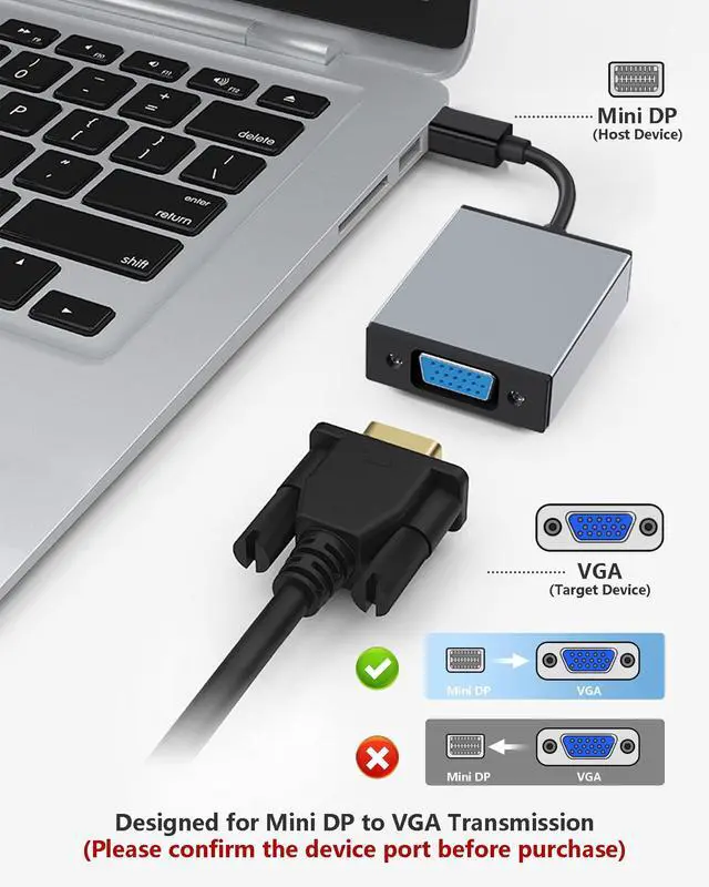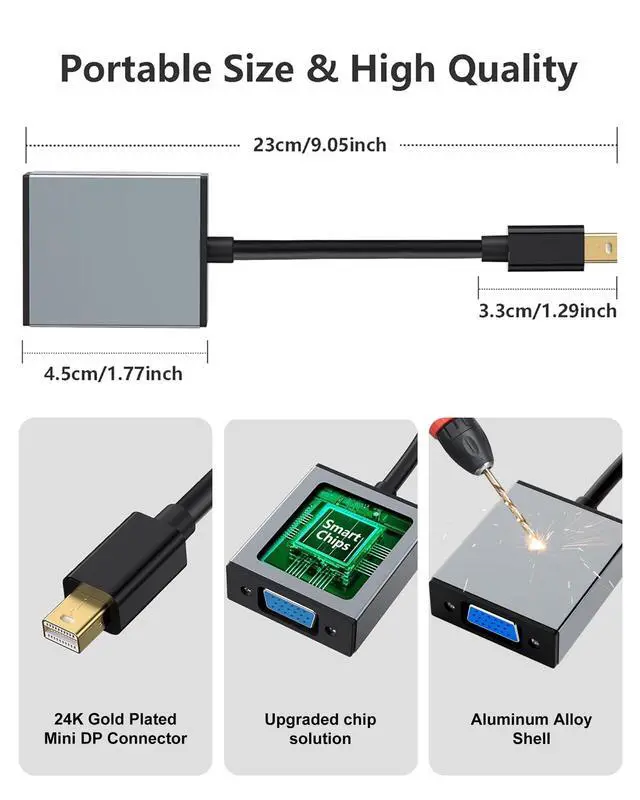^^ Superior Data Transmission: Our Mini VGA to Mini Displayport Adapter features an advanced chip solution and professional multi-layer shielding for instant and accurate data streaming, ensuring a seamless video experience.