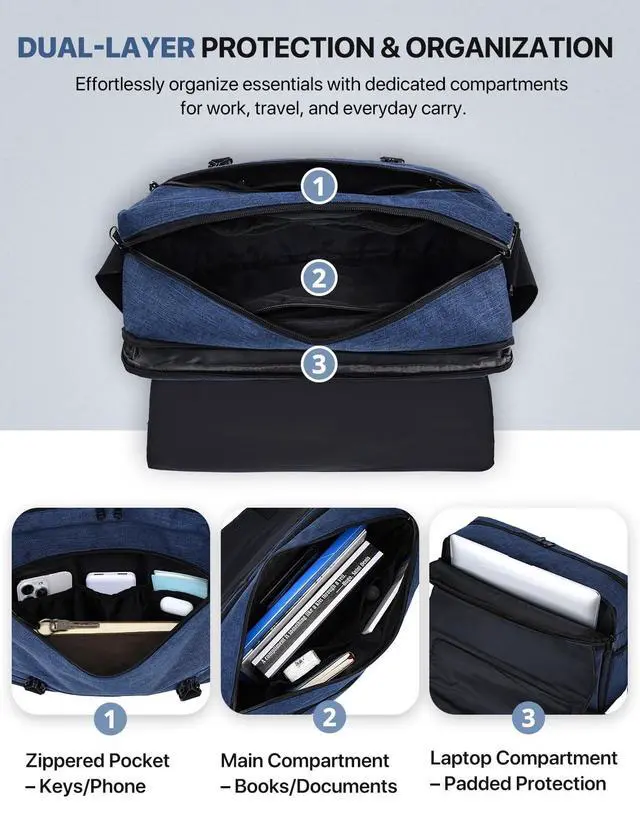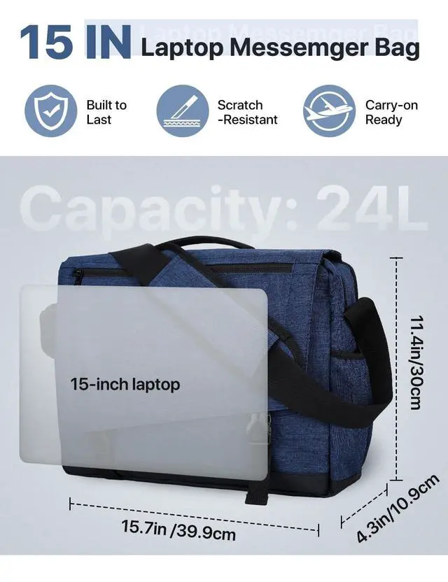 LAPTOP: The shoulder bag for men is roomy and easy to organize your things/essentials. It is constructed with a separated padded sleeve for 15inch laptop, easy to put and take out the laptop with the separated zipped compartment.