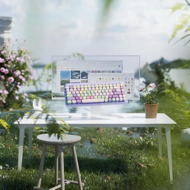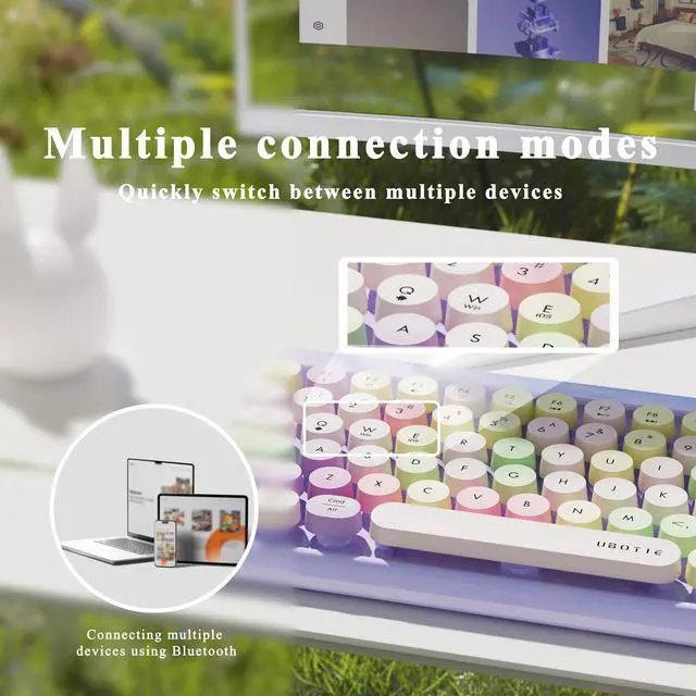 Retro Aesthetic: Features 84 typewriter-style floating round keycaps, combining vintage charm with modern functionality ^^