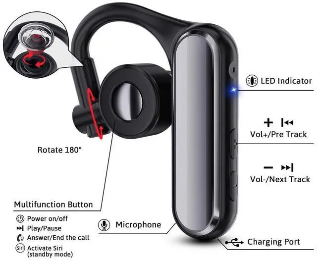 Rotatable & Ultra-Light Wearable Design: Only 14g lightweight Bluetooth mono earpiece with 180 rotatable design, allowing comfortable wear on either left or right ear for all-day use ^^ Dual Device Pairing &