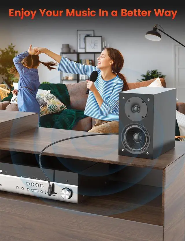 ^^ Flexible Installation: The 90-degree angled connector allows for a snug fit in tight spaces behind furniture or entertainment units, optimizing space without compromising sound quality.